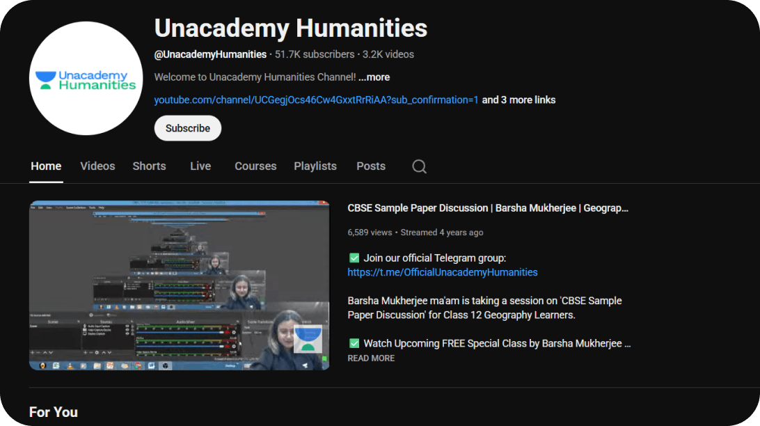 Conducted competitive analysis to identify content gaps, then built separate channels for Science, Commerce, and Humanities to create focused student experiences.