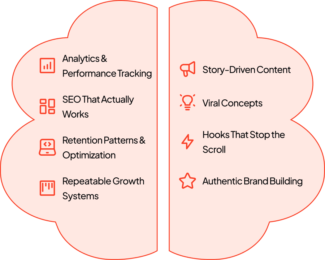 My edge? I've reverse-engineered YouTube's algorithm - search ranking, audience retention curves, the recommendation engine. Data tells me the 'what.' Psychology tells me the 'why.' Together, they create unstoppable growth.